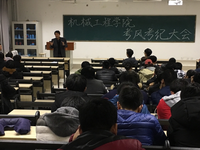 为严肃考风考纪,构建诚信校园,学院于12月25日下午5:30在A4教学楼313召开“机械工程学院考风考纪大会”。学院副院长副书记董亚军、学工办辅导员和各年级学生干部参加本次大会。